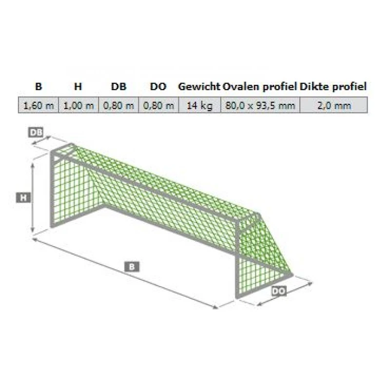 Aluminium kanteldoel met afm. 160 x 100 cm. (gekanteld 80 cm. hoog). Een kanteldoel kan zoals de naam al zegt gekanteld worden, waardoor de doelgrootte verkleint of vergroot.