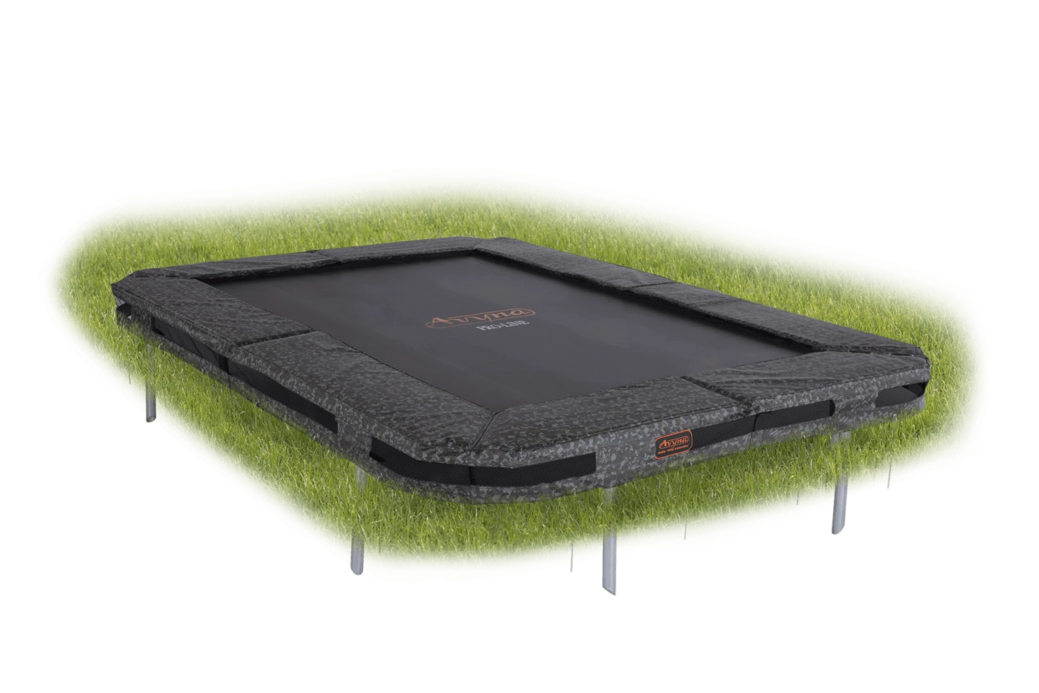 Deze grote rechthoekige trampoline Avyna PRO-LINE heeft afmetingen van 380 x 255 cm. Deze grote trampoline is voorzien van een soepele springmat en een stevig trampoline randkussen. Dit is een inground trampoline en speciaal zo ontworpen dat ze gemakkelijk ingegraven kunnen worden. Het frame is voorzien van InGround pinnen waardoor onder de trampoline alleen nog in een kom uitgegraven hoeft te worden. Extra versteviging aan de randen is dus niet nodig.