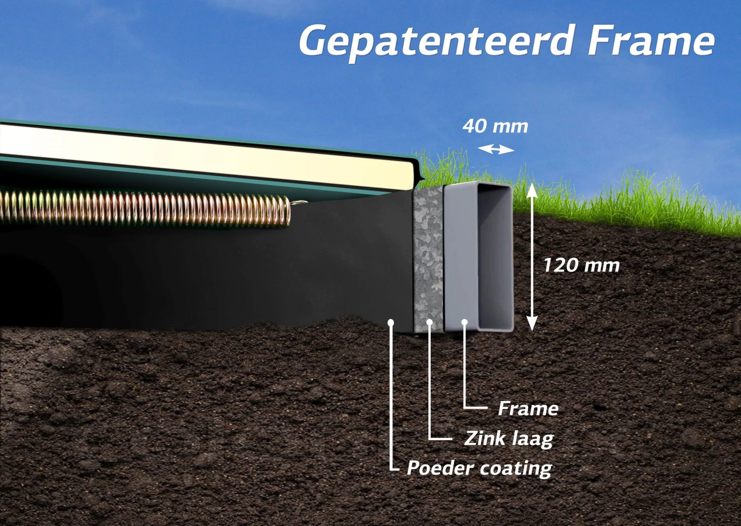 Het gepatenteerde frame is eenvoudig te monteren en te plaatsen.