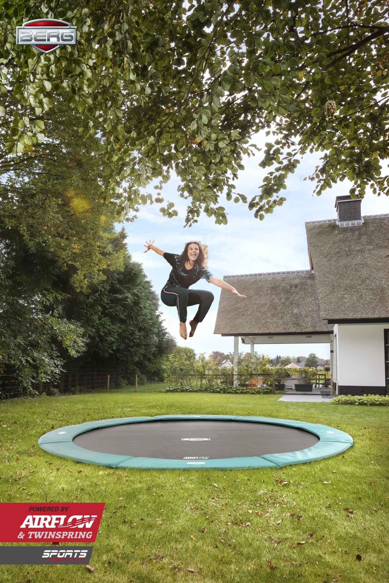 Deze innovatieve Flatground trampoline loopt gelijk aan het gras, waardoor hij onopvallend aanwezig is in de tuin en tevens makkelijk te betreden is. Bovendien springt deze trampoline ook nog een perfect door het unieke BERG Airflow springdoek. Deze laat nl. 50% meer lucht door, zodat je nog fijner springt. En door speciale banden in de beschermrand wordt het klapperende geluid van het randkussen op het frame voorkomen..