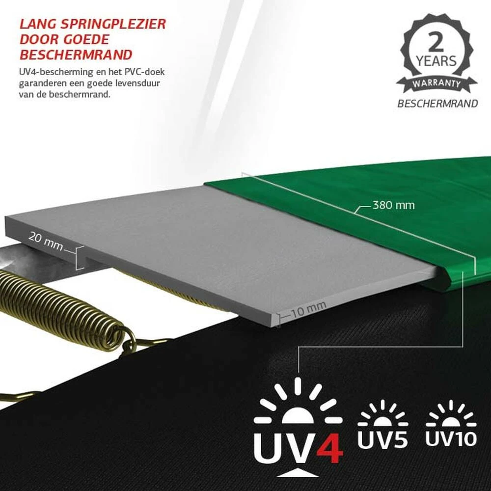 Deze trampoline is uitgerust met een framenet, dat standaard aan de trampoline bevestigd is. Dit zorgt voor extra veiligheid, zodat kinderen, huisdieren of voorwerpen niet onder de trampoline kunnen komen.