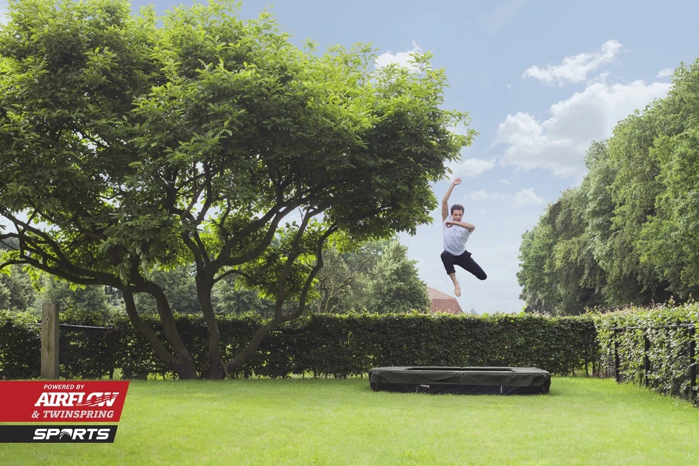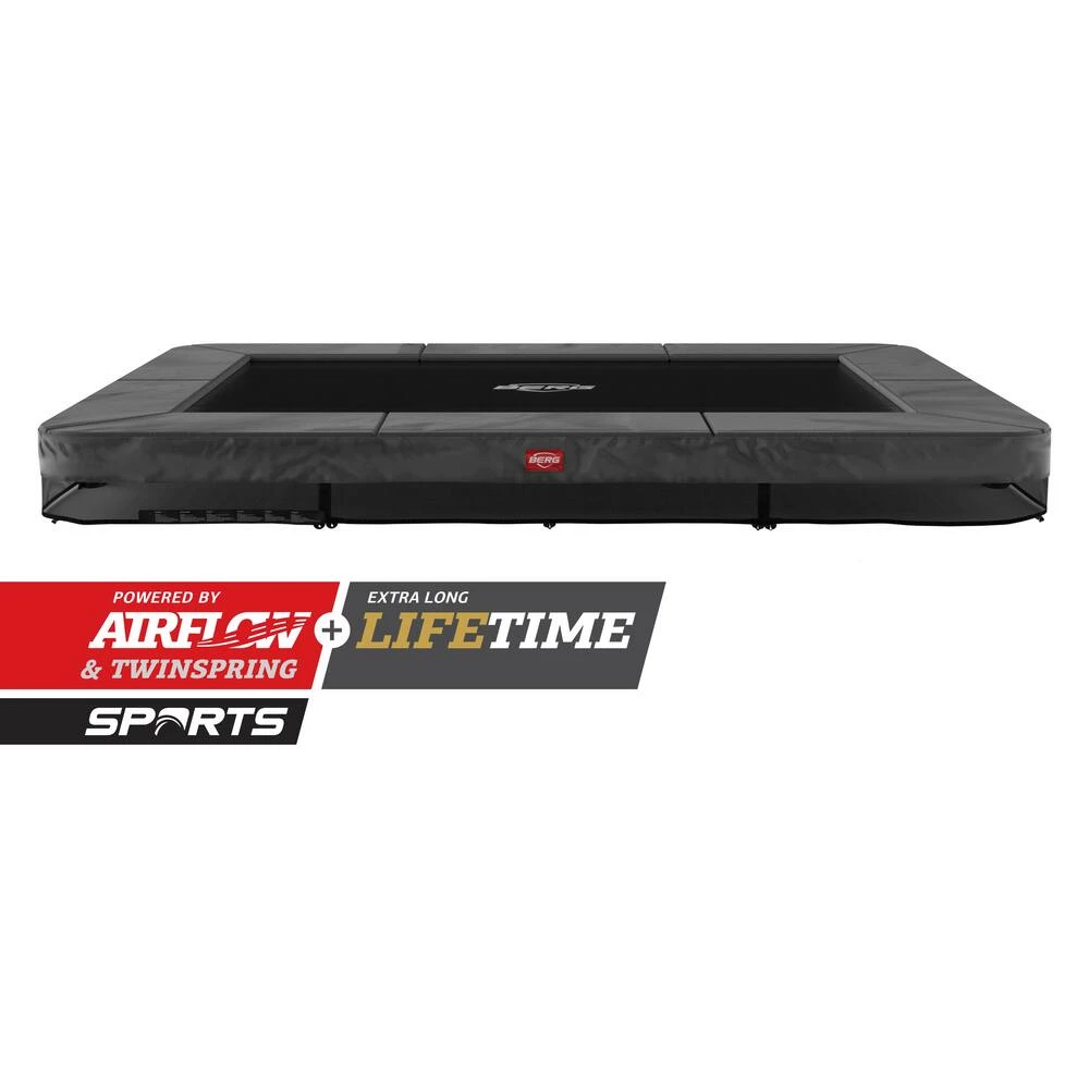 Rechthoekige kwaliteitstrampoline van BERG met Twinspringveren en Airflow springdoek.