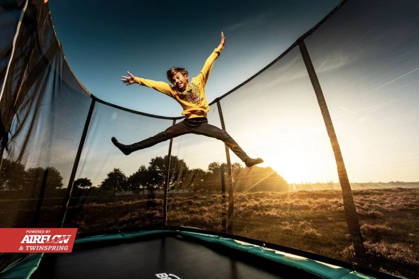 De Ultim Champion is uiteraard uitgerust met het Airflow springdoek en Twinspring veren. Het Airflow springdoek laat 50% meer lucht door. Hierdoor kun je hoger springen en word je minder snel moe. De Twinspring veren zijn diagonaal geplaatst. Hierdoor bevat de trampoline meer veren en zijn deze bovendien langer. Dit zorgt voor meer springplezier en een grotere perfect jump area.