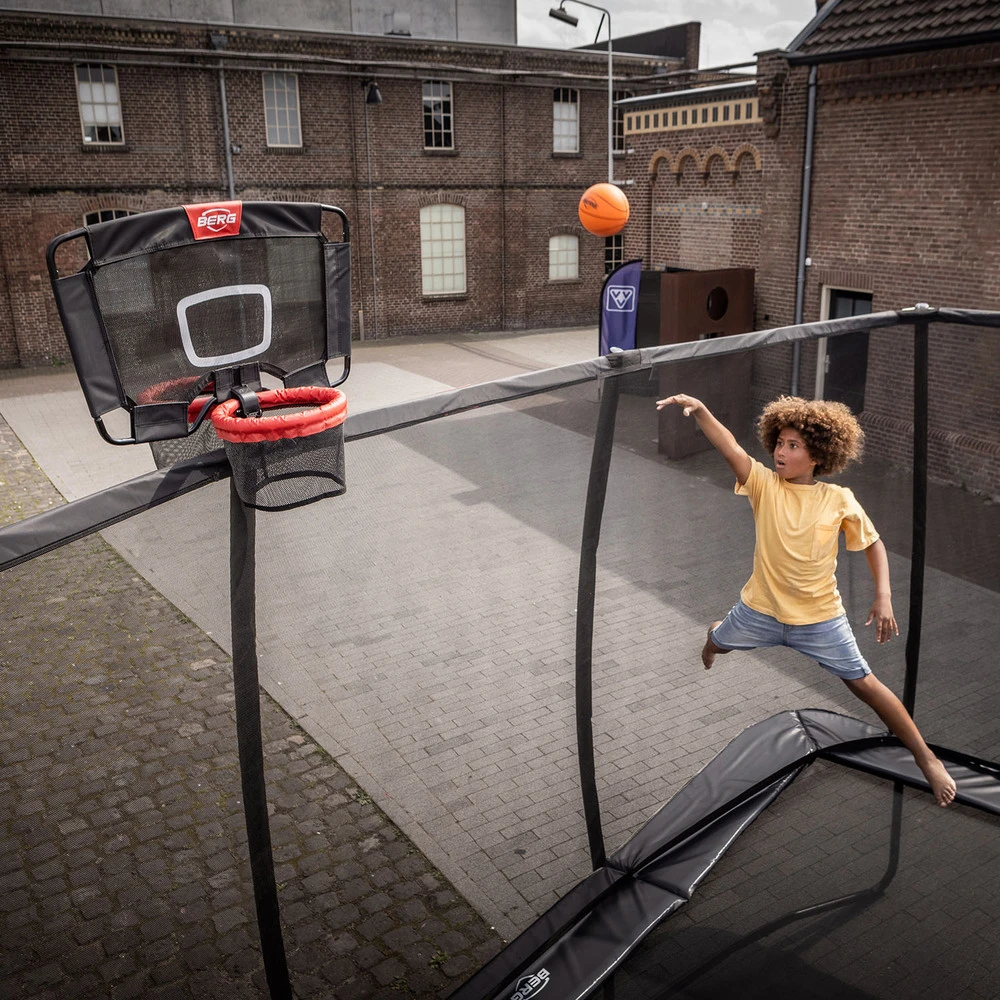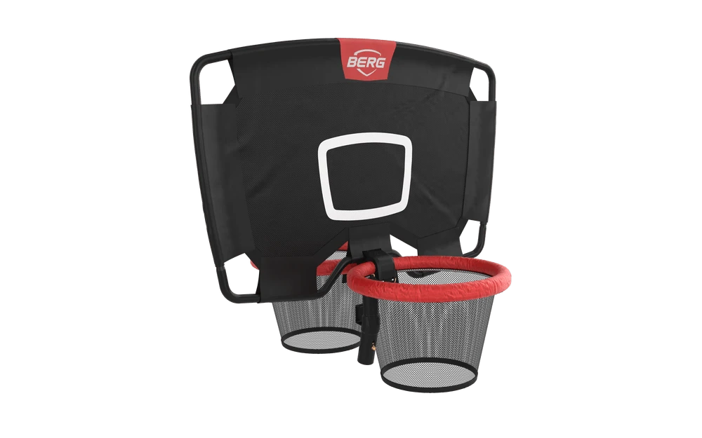 Maak je BERG trampoline compleet met de BERG Basketball TwinHoop. Met deze Basketball TwinHoop vermaak jij je nog langer op jouw trampoline. De Basketball TwinHoop is alleen geschikt voor BERG trampolines met net. Deze accessoire past op zowel het veiligheidsnet Deluxe (XL) als op het veiligheidsnet Comfort. De BERG Basketball TwinHoop is aan beide zijden voorzien van een baketbalring. Dit betekent twee keer zoveel plezier! Je kunt zowel vanaf de trampoline als vanaf de grond aan de andere zijde proberen te scoren. Bij aankoop van deze accessoire ontvang je twee basketballen van hoogwaardige kwaliteit cadeau. Hierdoor kun je direct samen spelen en de BERG Basketball TwinHoop optimaal gebruiken. Deze accessoire is eenvoudig te installeren en buigt veilig met je mee als je er per ongeluk in blijft hangen tijdens het eventuele dunken.