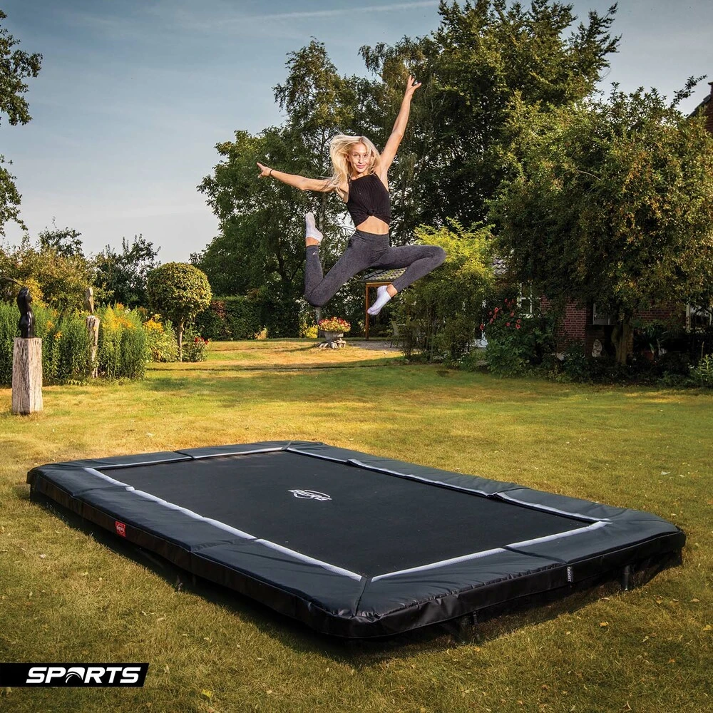 Rechthoekige kwaliteitstrampoline van BERG met Gold-springveren en regular springmat.