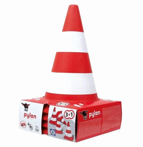 Een set van 4 robuuste pionnen in oranje met wit. Hiermee baken je bijvoorbeeld veilig “de bouwplaats” af of geef je aan waar de “rijbaan” ligt.