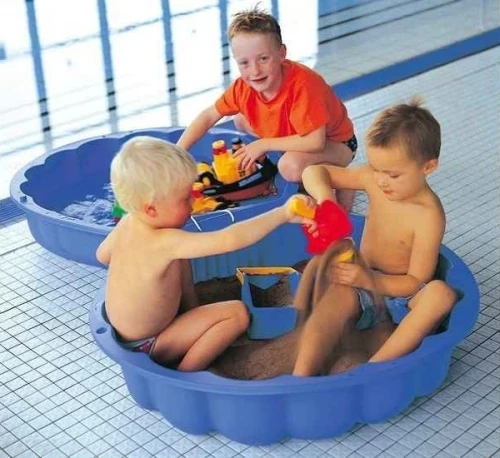 Deze schelp vervult alle wensen van de kleine zonaanbidder en is een zandbak en badje in 1. Afm. (dichtgeklapt): 88 x 88 x 48 cm. Afmetingen (open): 180 x 87 x 24 cm.