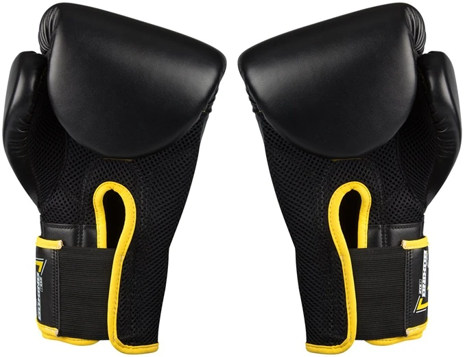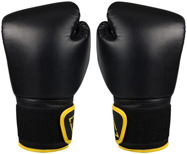 Kinderen bokshandschoen, in zwart/geel pu- leder met voorgevormde foam polstering en klittebandsluiting.