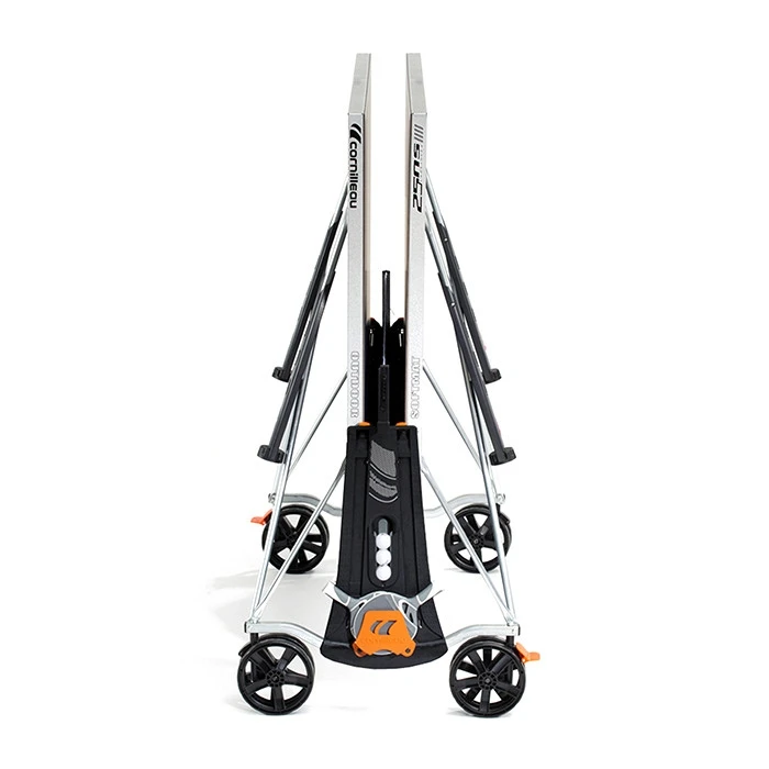 De Cornilleau Crossover 250S outdoor tafeltennistafel is een tafel met verschillende functies. Zo heeft het een speelveld dat behandeld is tegen de reflectie van de zon. Door deze Softmat zal de zon tot 3x minder weerkaatsen. De dubbele rubberen wielen zorgen ervoor dat deze pingpongtafel elk terrein aankan. Ook is er een opslag voor de balletjes en de bats voorzien. De rechte poten zijn gemaakt uit verzinkt staal en hebben een diameter van 100mm die extra verstevigd zijn met een harslaag. Het gepatenteerde DSI-systeem van Cornilleau is een van de snelste en veiligste klapmechanismes voor tafeltennistafels.