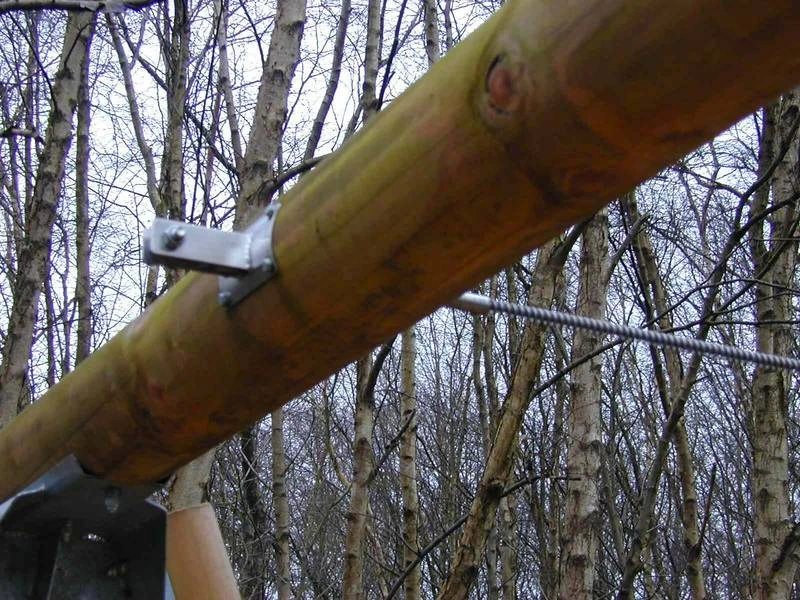 Eindstuk kabelbaan Kabelhouder voor rondhout