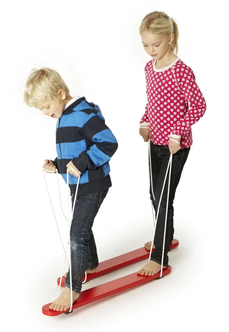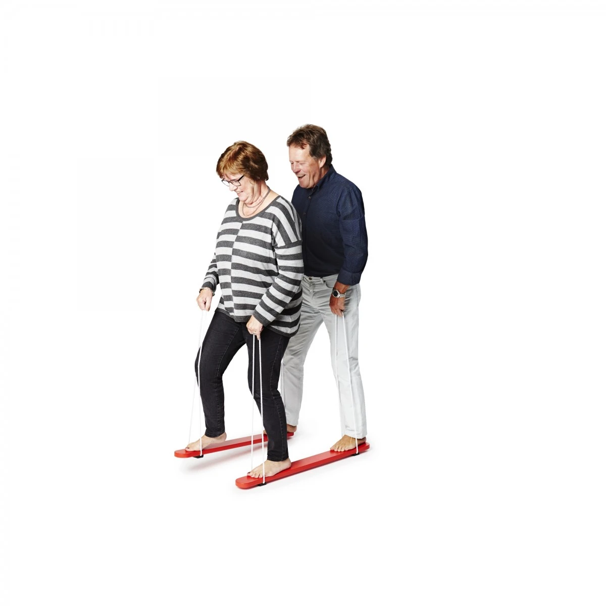 Set van 2 reuzenski’s, vervaardigd uit hout en aan de onderzijde voorzien van anti-slip rubber klossen om de vloer bij indoor gebruik te beschermen.