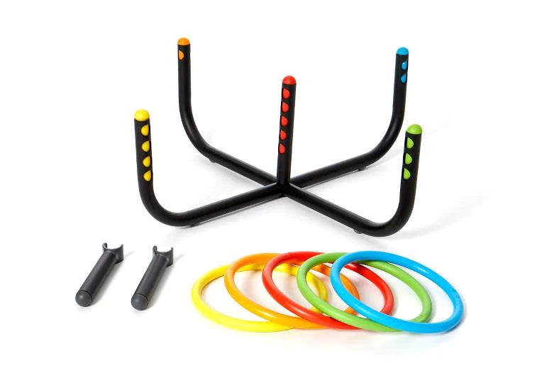 Het populaire ringen werpen is zowel fysiek als mentaal een uitdaging, want het vergt concentratie en lichaamscontrole om de afstand in te schatten en de ringen nauwkeurig te gooien.