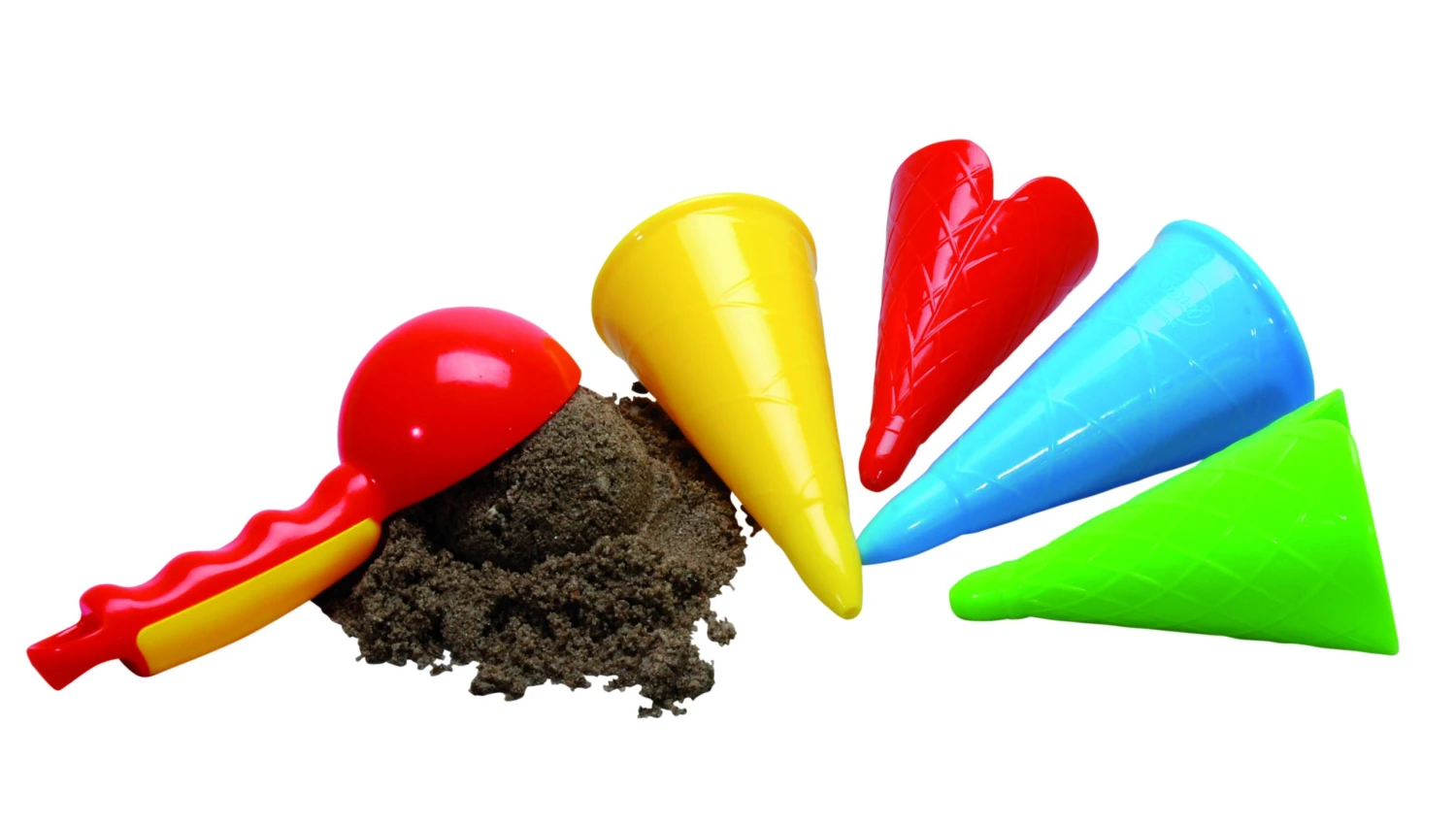Deze kleurrijke zandvormen in ijsvorm incl. ijsschepjes mogen in geen enkele zandbak ontbreken De set bestaat uit vier ijshoorntjes in de kleuren geel, rood, groen en blauw. Met vochtig fijn zand kun je gemakkelijk met de ijsschep zandbollen vormen en deze vervolgens op de ijshoorntjes plaatsen. Deze kunnen vervolgens met verschillende materialen als strooisel worden versierd. Gemaakt van hoogwaardige en niet-giftige materialen. Het perfecte cadeau voor kinderen die graag in de rol van een ijsverkoper willen stappen.