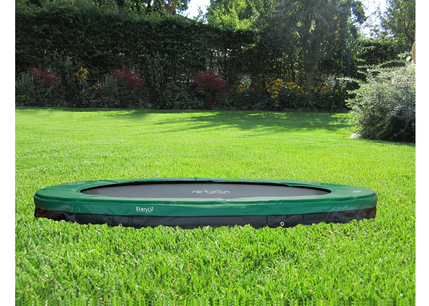 De ETAN Premium trampolines staan voor topkwaliteit en veiligheid en jarenlang springplezier. De inground versie ia altijd uitgerust met het Gold randkussen.wat gekenmerkt wordt door een zware kwaliteit zeildoek. Deze wordt door de fabrikant 5 jaar gegarandeerd. Bovendien is deze aan de onderkant afgewerkt met een luchtdoorlatend doek welke de ruimte van onderkant randkussen tot de aarde geheel afdekt. Daardoor kunnen er geen huisdieren, ballen etc. onder de trampoline geraken.