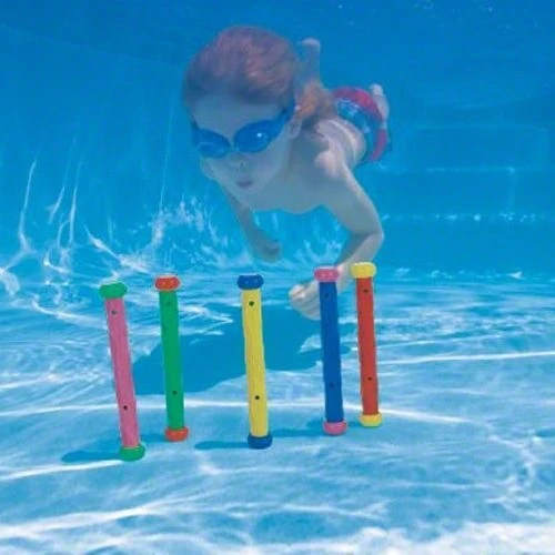 Set van 5 duikstaafjes, waarmee allerlei duikspelletjes mogelijk zijn.