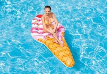 Met dit 1-persoons luchtbed dobber je rond op het water in de vorm van een ijsje. Dit luchtbed heeft een combinatie van kleuren, bruin, roze en wit.