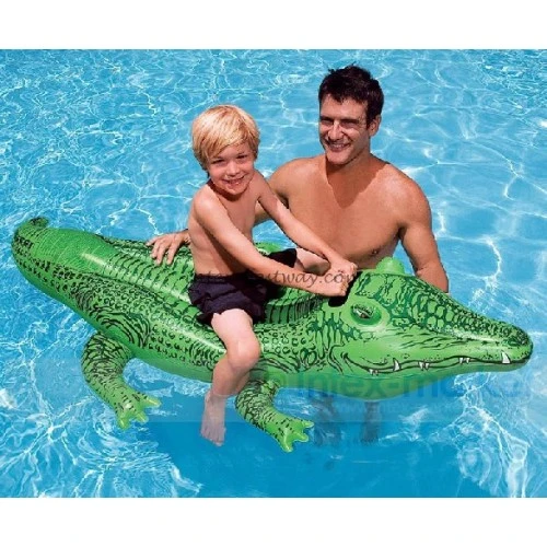 Opblaas krokodil met afmetingen 168 x 86 cm. Voorzien van handvatten.