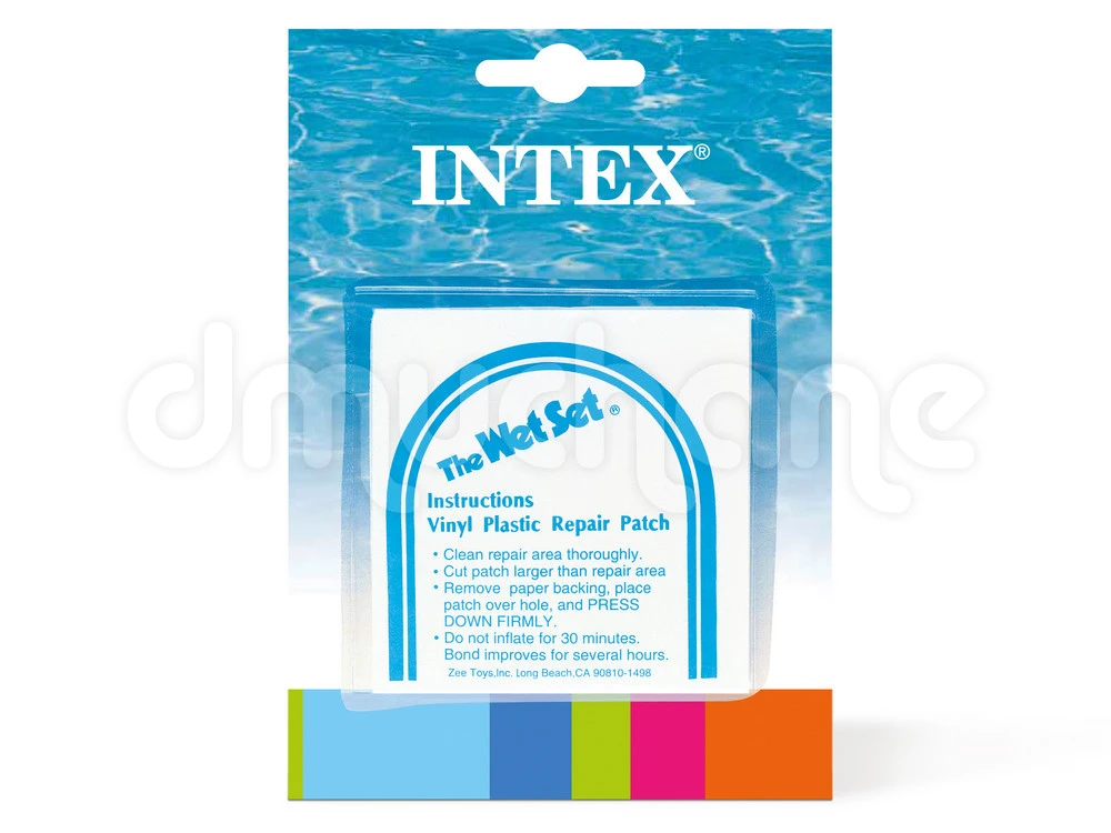 Intex reparatieset voor het plakken van lekkages in uw zwembad, luchtbed, zwemband en andere opblaasbare artikelen. Deze set bestaat uit 6 zelfklevende vellen van 6,8 x 6,8 cm. Voor het plakken heeft u geen lijm nodig. De plakvellen zijn niet onder water te gebruiken. Maak het zwembad eerst leeg.