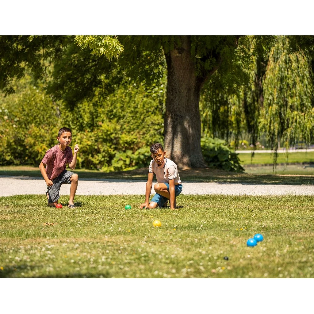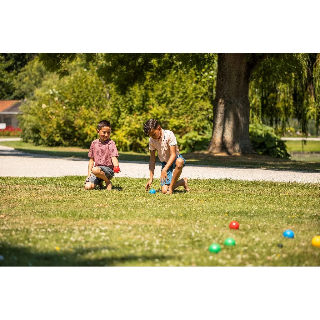 Jeu de boules set 8 kunststof ballen en 2 markeringsballetjes in handige daagtray.