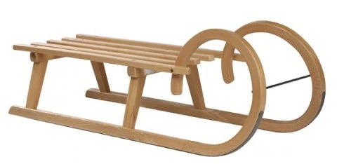 Slee uit gelakt beukenhout met roestvrij stalen ijzers. Klassieke houten krul aan voorzijde, prettig om aan vast te houden.