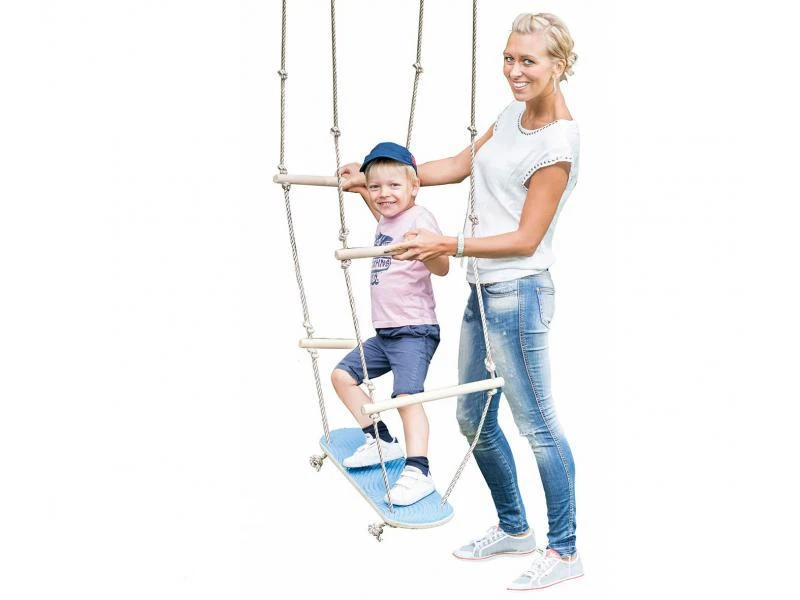 Een geheel nieuwe schommelbeleving, met deze hoogwaardige houten skateboardschommel met geintregreerde touwladder. Gewoon erop gaan staan en je kunt los… voor heel veel plezier.