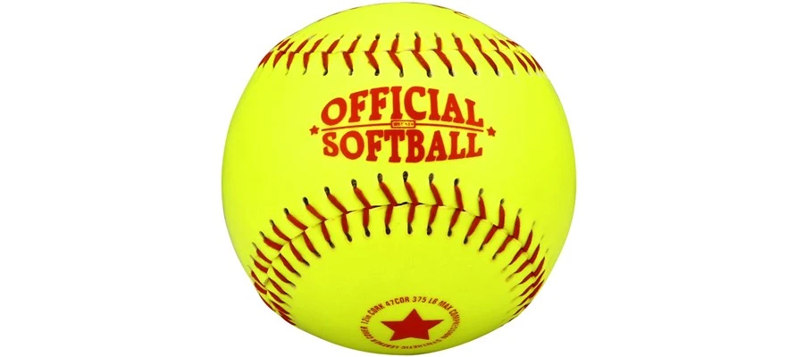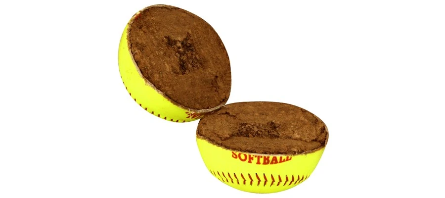 Abbey softbal in fluorescerend geel. Buitenzijde PVC, kern kurk.