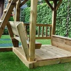 Extra vloertje onderin de speeltoren incl. ondersteuningsbalk in het midden. Uit 28 mm. dik geimpregneerd en gewaxed vuren hout.