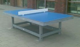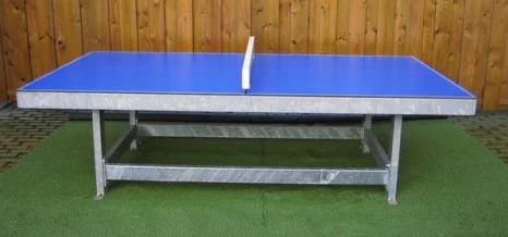 Zeer degelijke en hufterproof tafeltennistafel. Deze tafel heeft een zwaar gegalvaniseerd stalen frame en een extoriet speelveld. Dit speelveld heeft uitstekende speeleigenschappen. De randlijst van de tafel is vervaardigd van een staalprofiel van 100 bij 50 mm. Het speelnet is van stalen kokerprofiel.