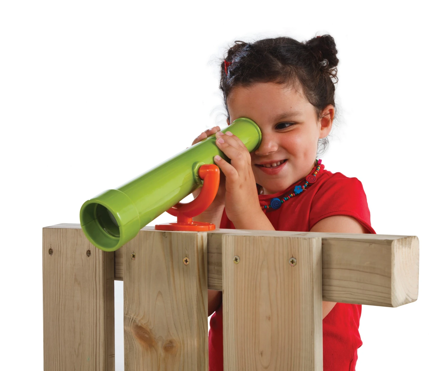 Een heel leuk accessoire bij een speeltoren. De lens werkt niet echt (kunststof). Vervaardigd uit spuitgegoten ABS, lengte 30 cm, draait in alle richtingen.