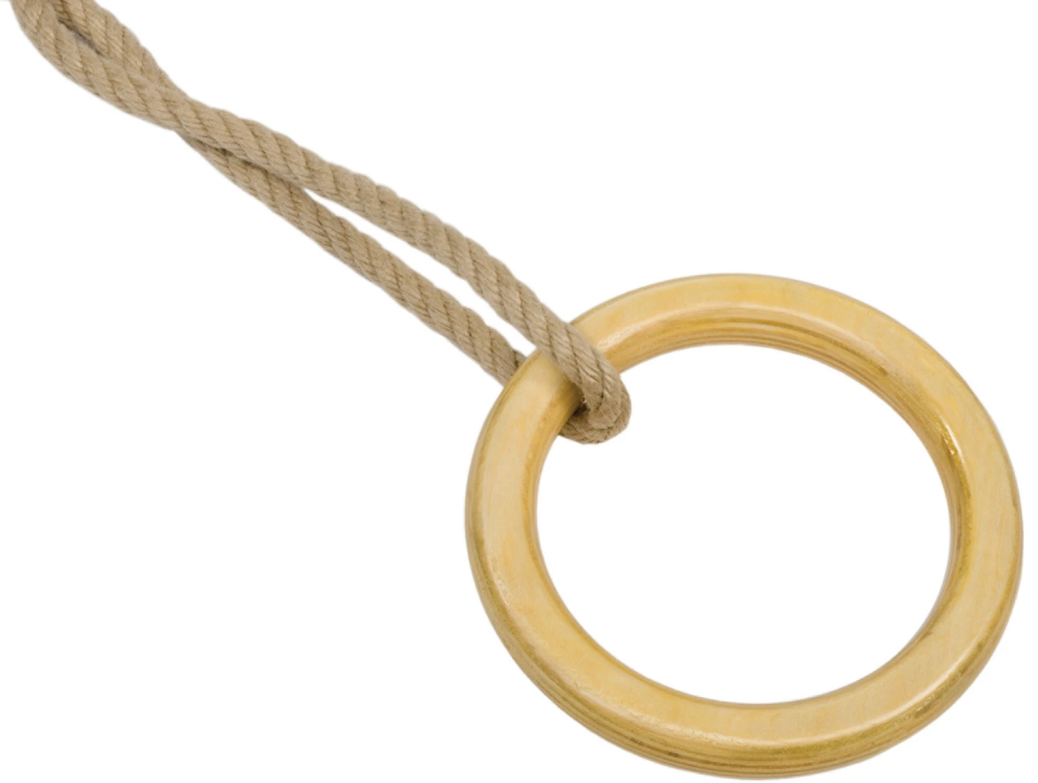 Deze turnringen liggen heel fijn in de hand. Net als in de sportzaal. Compleet met 12 mm. PolyHemp-touwenset. Deze ringenset mag niet buiten blijven hangen! De ringen zijn gemaakt uit vernist multiplex, de ophangringen en stelachten zijn uit gegalvaniseerd staal.