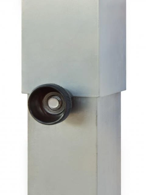 De paal is vervaardigd uit aluminium kokerprofiel. De gegalvaniseerde stalen voetplaat is voorzien van een pin om in het gras te steken