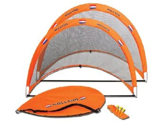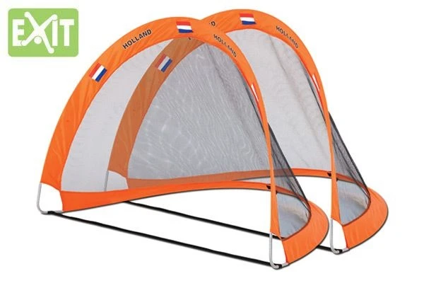 Voetballen als speler in het Nederlands elftal met deze 2 EXIT Flexx Holland doelen! Speel voetbal waar je maar wilt! Geen probleem met onze EXIT Flexx Pop-Up Doelen! Deze voetbaldoelen zijn snel en eenvoudig neer te zetten. Uit de tas halen en het doeltje vouwt zichzelf uit. Verankeren en spelen maar.